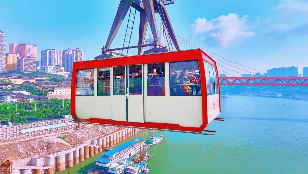 搭乘能容納50人的巨型“箱子”,腳下是濤濤的江水,身側(cè)是氣派的大橋,前方是林立的高樓,千余米的距離、5分鐘的時(shí)間,足以一窺山城的無限魅力。