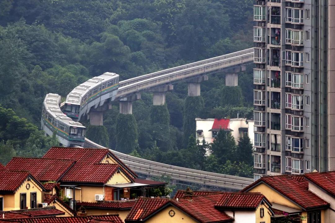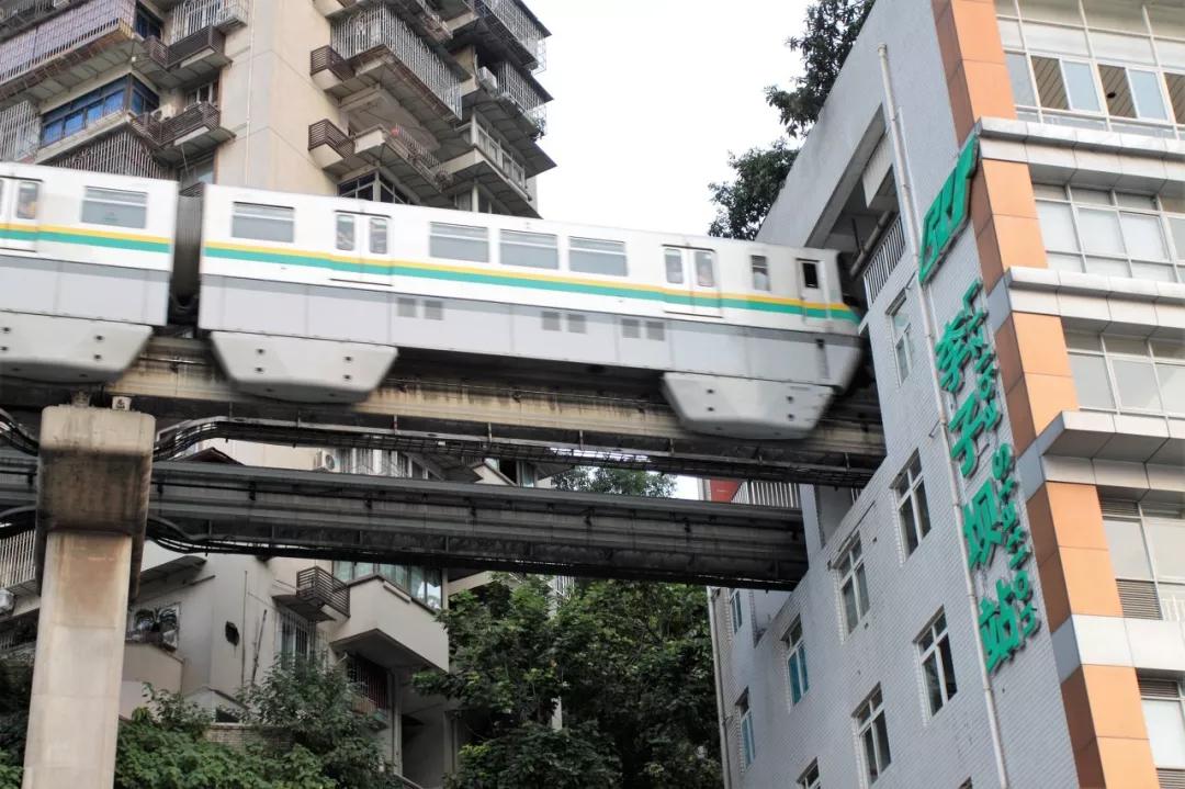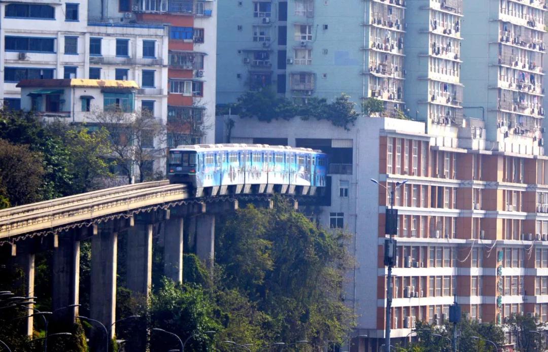 在山城重慶,軌道隨山勢(shì)蜿蜒,其中最急的彎道當(dāng)屬2號(hào)線平安站到大渡口站段,約90度的彎道,如過山車一般驚險(xiǎn)刺激。