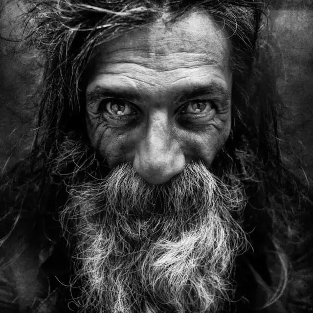 因?yàn)闆]有顏色的干擾,所以黑白攝影更能表達(dá)情感,特別是在拍攝人像照片時(shí),特寫鏡頭更能震撼人心。下面這張攝影作品,攝影師利用黑白攝影,將人物的眼神、皺紋、膚質(zhì)等表現(xiàn)的淋漓盡致。