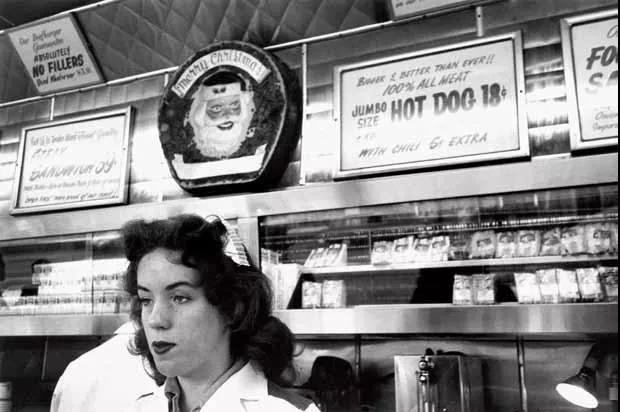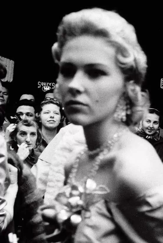 他在擁擠的大街上,在暗淡的酒吧里,在熱鬧的集會中,甚至在行駛的汽車?yán)?,利用徠卡相機(jī)不搶眼的特點以及高速膠卷、廣角鏡頭和超焦距等便利,完全用現(xiàn)場光,大量搶拍所見到的一切。