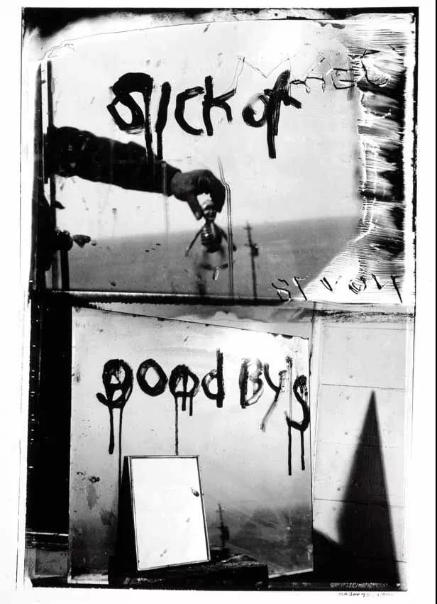 1971 年,隨著人們對弗蘭克及其作品的更加關(guān)注,榮譽(yù)不斷到來。他與第二任妻子瓊·利夫(June Leaf)決定一道自我流放。他們來到加拿大新斯科舍省馬布島上,遠(yuǎn)離塵囂,弗蘭克又開始拍攝靜態(tài)的照片。但他沒有重復(fù)自己,這一次他使用的是 5×7 畫幅一次成像的寶麗來相機(jī),并且很少用單幅照片,而是用多幅照片拼接成作品,常常還在底片上刻上文字,與他的以前作品完全不同。