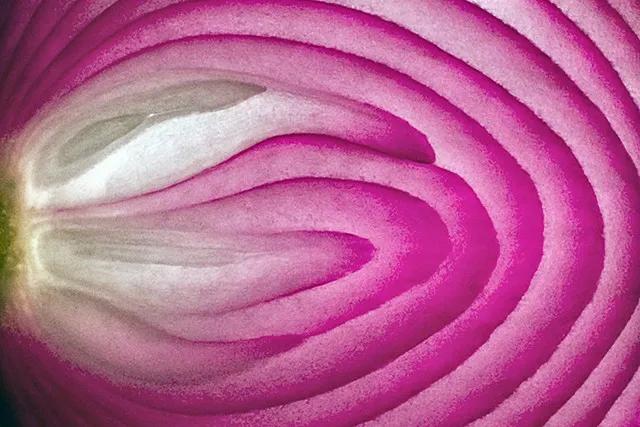 洋蔥底部的根須,破壞了規(guī)律線條的抽象感