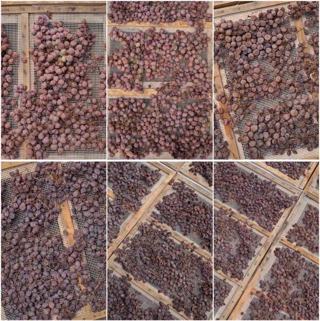 這種極其講究的Passito的釀造工藝概括一下,就是把健康的葡萄像PX葡萄那樣暴曬成葡萄干、像TBA一樣粒選、像托卡伊Aszú一樣釀造(葡萄干分批添加到新鮮葡萄汁中發(fā)酵),最后做成叫Passito的風(fēng)干甜白葡萄酒(沒(méi)有貴腐影響)。