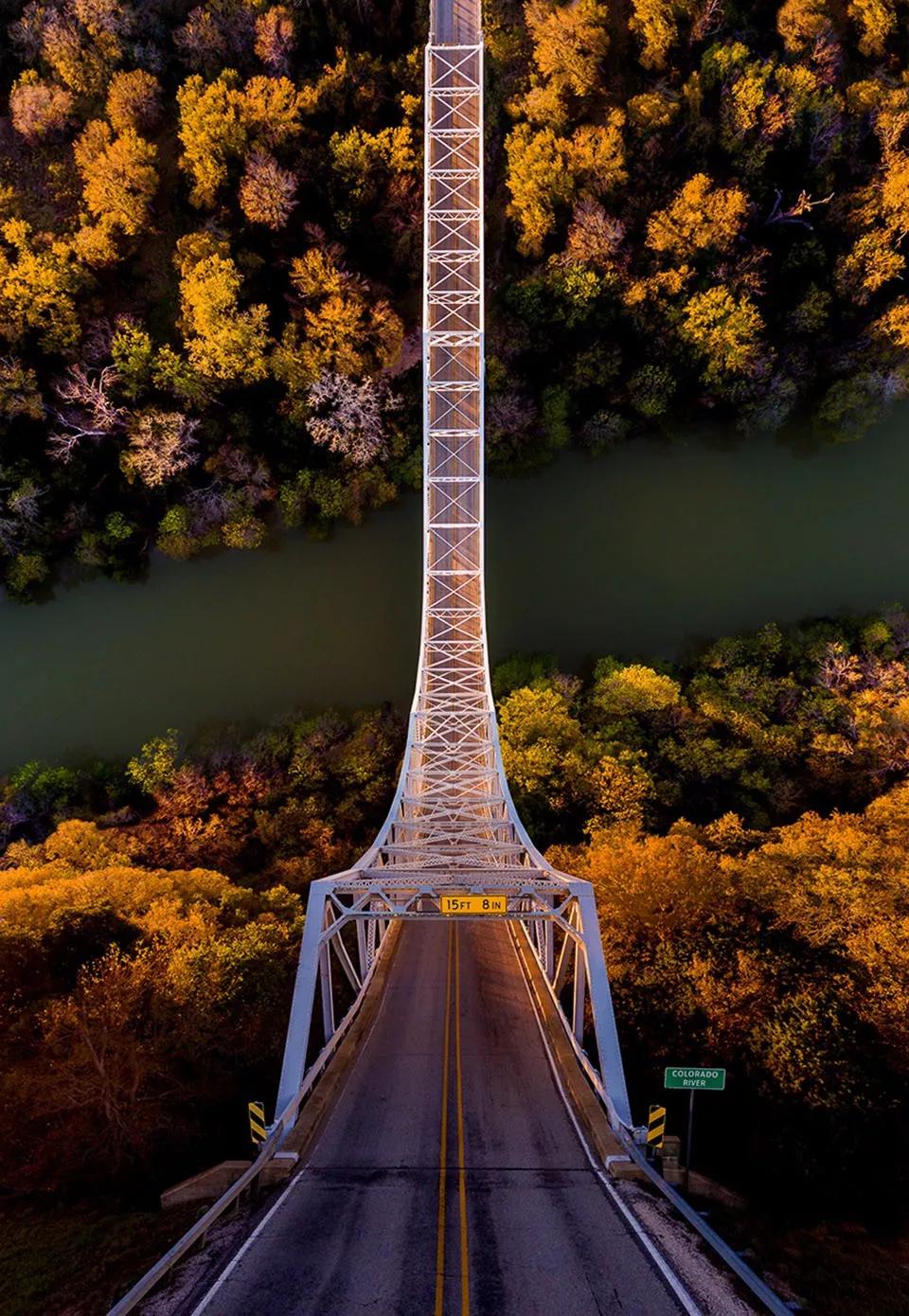 他將同一角度拍攝的航拍照片與普通的照片上下合并,創(chuàng)造出了類似于平行宇宙的效果。