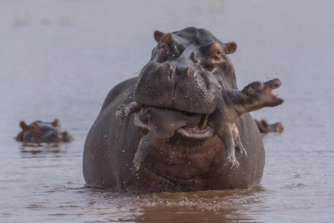 津巴布韋卡里巴湖的淺灘上,一只才出生幾天的河馬寶寶正享受著媽媽無微不至的照顧,這時,一只巨大的雄獸突然直直地向這對母子襲來。它先是追逐了一會兒母親河馬,在追逐中趁母河馬不注意一口咬向她的幼崽,顯然是一早就計劃好了的。一旁悲痛欲絕的母河馬全程目睹了這一切。