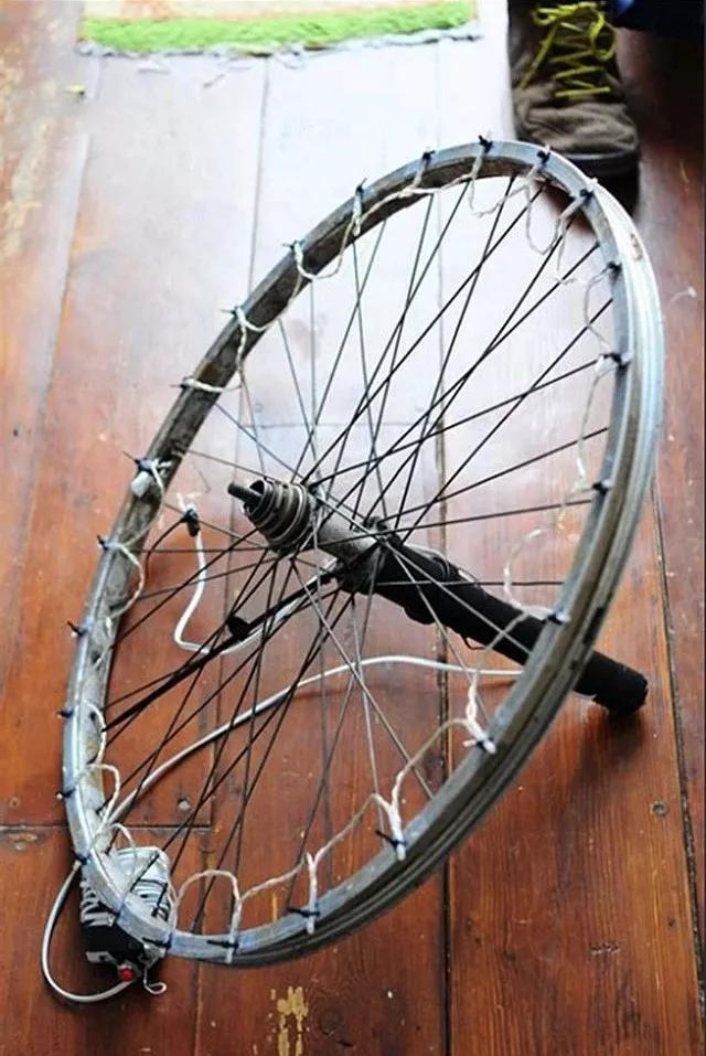 如果不想多花一筆錢(qián)購(gòu)買(mǎi)專(zhuān)門(mén)的光繪復(fù)合光源,你也可以自己 DIY,比如說(shuō)下圖,國(guó)外網(wǎng)友把 LED 小燈泡綁在自行車(chē)輪上制作的光繪器材“拿破侖”,拍出來(lái)的效果也是很有意思的呢!