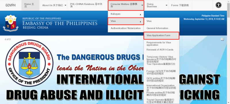 可點(diǎn)擊訪問(wèn)菲律賓駐華大使館,選擇“領(lǐng)事事務(wù)→Visa→Visa Application Form”下載表格。