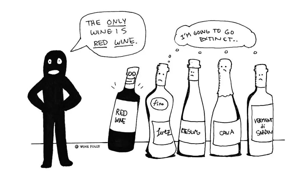 這句話太絕對(duì)了,因?yàn)槠咸丫频氖澜缣罅?!現(xiàn)在已知的就有超過(guò)1400個(gè)葡萄品種和數(shù)以千計(jì)風(fēng)格不同的產(chǎn)區(qū),為什么會(huì)有人要把自己局限在一個(gè)小圈子里?這根本毫無(wú)意義!也許這并不是什么大事兒,或者以他們現(xiàn)在對(duì)葡萄酒的了解,甚至還沒(méi)有意識(shí)到這一點(diǎn)。