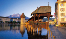 搭乘瑞士金山快車(GoldenPass 專列)前往瑞士中部第一度假勝地-琉森。(注:金山快車具體時間以所乘車次上的時間為準(zhǔn))將瑞士湖光山色美景一覽而盡,瑞士典型的高原河谷的明媚面貌盡收眼底。列車采用的是幾乎落地的全景大窗,因此它被稱為是世界上最美之一的觀景列車。琉森湖將市鎮(zhèn)隔為南北兩區(qū),湖光水色映照城中美景,悠游其間,亦真亦幻,地處陡峭的石灰?guī)r山地中間,湖光山色相映,景如畫。以及湖畔的八角水塔,和形似彎月、曲折成趣的卡貝爾橋。琉森擁有許多 15 世紀(jì)彩繪壁畫的建筑與搭有高塔的城墻,具有中世紀(jì)所特有的美、和諧及生命力。