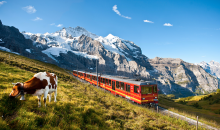 早餐后,乘車前往被稱為“冰河村”的格林德瓦,是因特拉肯東南邊的一座村莊坐落在幽深秀麗的盆地中。我們將搭乘登山齒軌火車,前往位于因特拉肯市正南 20-30 公里處,海拔 4158 米的阿爾卑斯雪山—少女峰。沿途可以欣賞到每個小鎮(zhèn)不同的景色,還可穿過一段長達(dá) 7.2 公里的少女峰快車的隧道,此隧道全由人工鑿出,是 20 世紀(jì)初的工程奇跡。峰頂?shù)乃狗铱怂褂^景臺是登頂旅程的終點,海拔 3571 米高,站在號稱“歐洲屋脊”的少女峰上,可以觀賞到阿爾卑斯山全景。這一地區(qū)于 2001年被聯(lián)合國教科文組織列為世界自然遺產(chǎn),因而吸引著更多人矚目。