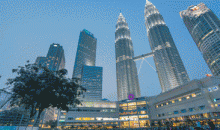 雙峰塔(遠(yuǎn)觀拍照)】吉隆坡石油雙塔是世界最高的雙塔樓 ,雙塔高 452 米 ,共地上 88 層 ,大樓表面大量使用了不銹鋼與玻璃等材質(zhì),雙峰塔與鄰近的  吉隆坡塔同為吉隆坡的知名地標(biāo)及象征。