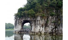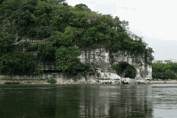 游覽【象鼻山】象鼻山是桂林的城徽山,是桂林旅游的標(biāo)志山,它坐落在桂林市中心的漓江與桃花江匯流處,形似一頭鼻子伸進(jìn)漓江飲水的巨象,象鼻和象腿之間是面積約一百五十平米的圓洞,江水穿洞而過,如明月浮水。坐落西岸的象山水月與漓江東岸的穿月巖相對,一掛于天一浮于水,形成"漓江雙月"的奇特景觀。