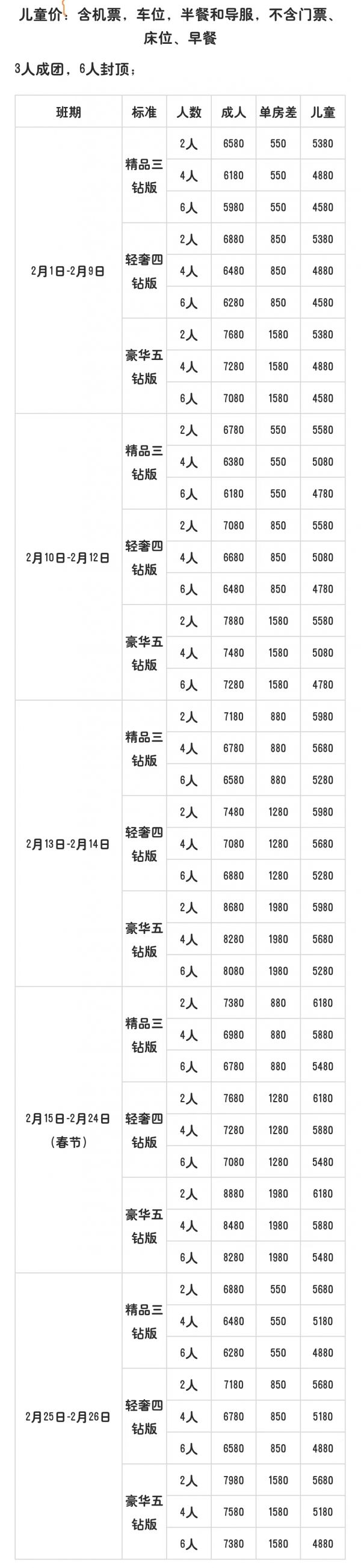 標(biāo)準(zhǔn)價(jià)格: 成人  8880 /人, 兒童  6180 /人