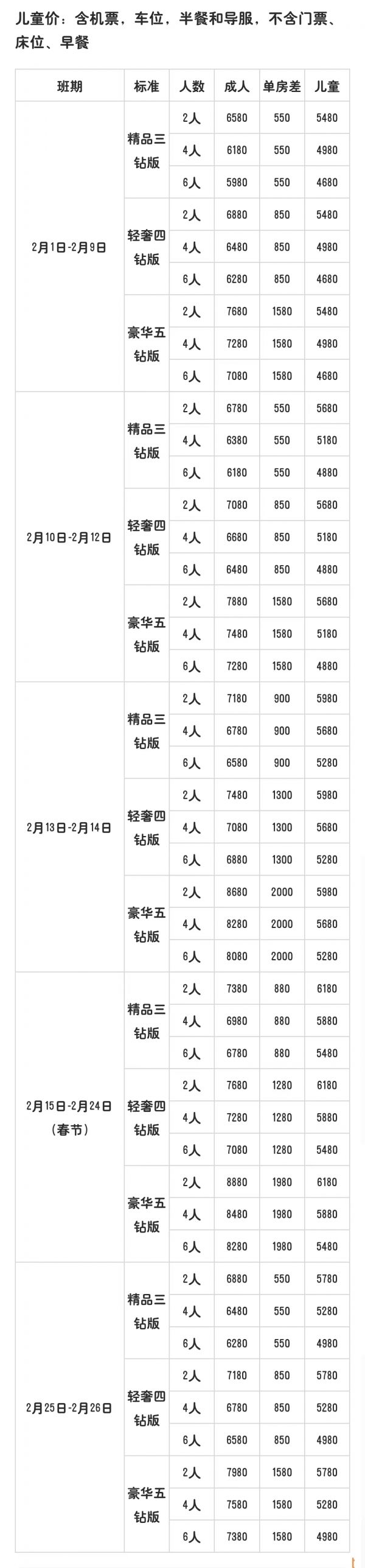 標準價格: 成人  8880 /人, 兒童  6180 /人