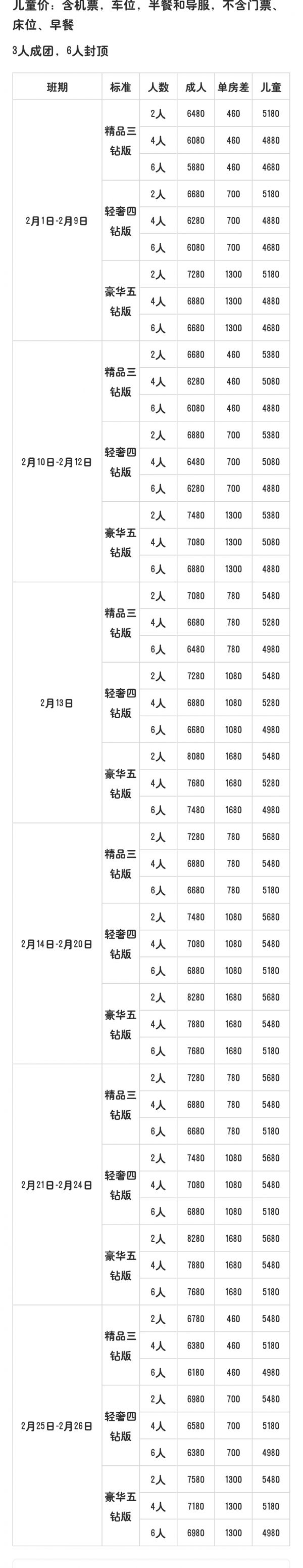 標(biāo)準(zhǔn)價格: 成人  7880 /人, 兒童  5680 /人