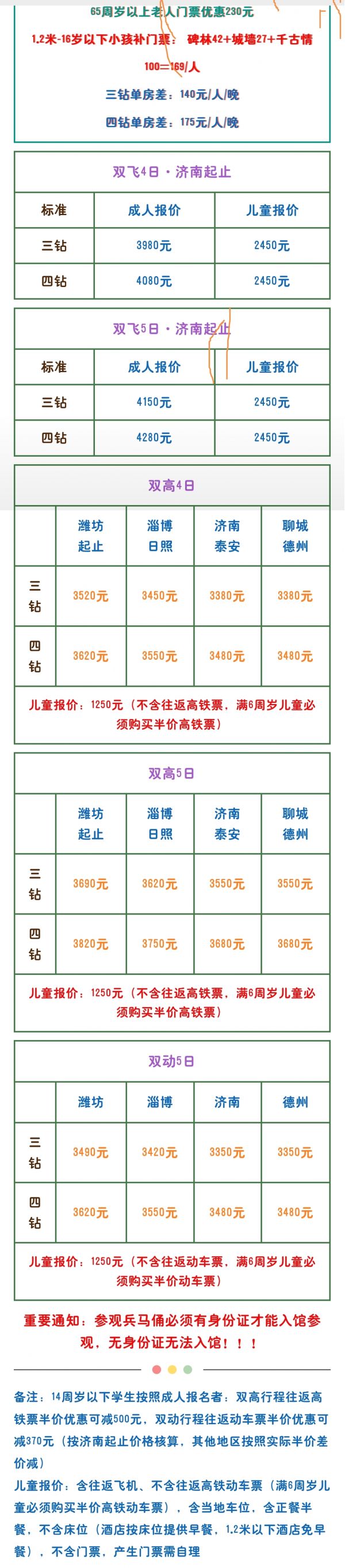 所有優(yōu)惠證件需要通過景區(qū)驗證,請帶好相關(guān)證件并及時交予導(dǎo)游與景區(qū)確認(rèn)。