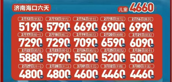 標準價格: 成人  7290 /人, 兒童  4660 /人