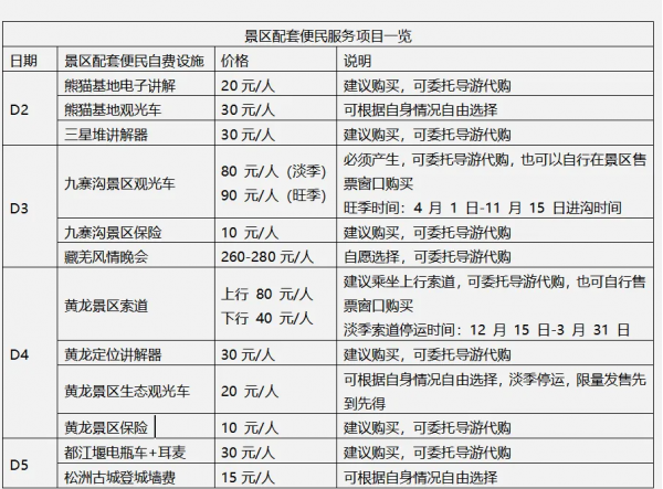 不含黃龍索道上行80元/人下行40元/人,定位講解器30元/人;觀光車20元/人;黃龍景區(qū)保險(xiǎn)10元 /人