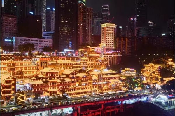 ◎游覽【洪崖洞】,位于重慶直轄市核心商圈解放碑滄白路,長江、嘉陵江兩江交匯的濱江地帶,坐擁城市旅游景觀、商務休閑景觀和城市人文景觀于一體。以具巴渝傳統(tǒng)建筑特色的“吊腳樓”風貌為主體,依山就勢,沿 江而建,解放碑直達江濱。