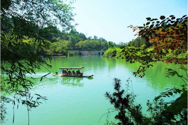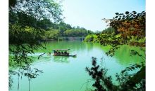 鴛鴦湖(不含游船30元/人)由兩個大湖、四個小湖串聯(lián)組成,湖面或?qū)捇蛘?,忽明忽暗,湖面?jīng)樹木分割出的水道四通八達,縱橫交錯,宛如一座水上迷宮。湖水碧綠澄凈,高大的古木一半在水下,水面之上則是交錯的枝葉,劃船穿梭于綠寶石一般的幽靜水面,彷佛置身童話世界。