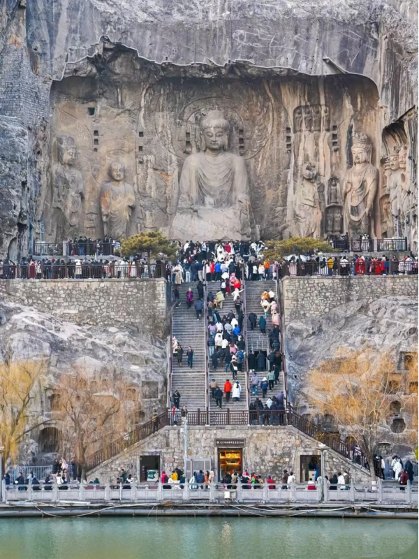 結(jié)束后游覽歷時四百多年建設(shè),有2300多個石窟,佛像10萬余尊,碑刻題記2800多塊,佛塔40余座的中國三大石窟之一的【龍門石窟】(自理門票90元/人),(龍門石窟與敦煌的莫高窟、大同的云岡石窟并稱為中國三大石窟)龍門石窟主要開鑿于北魏時期和唐代武則天時期,其中規(guī)模最大、名聲最響的是鑿于唐代武則天時期的奉先寺石窟,里邊的佛像造型雍容典雅、面目傳神,所穿服飾紋路清晰、衣褶宛然,景區(qū)包括潛溪寺、賓陽三洞、萬佛洞、蓮花洞、奉先寺等景點。游覽時間約2.5小時。