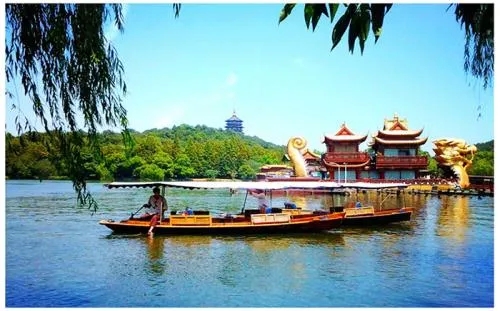 3、贈(zèng)西湖游船:西湖上的游船宛如一葉葉扁舟,漂浮在碧綠的水面上,帶著游客們探尋著這片美麗的秘境;
