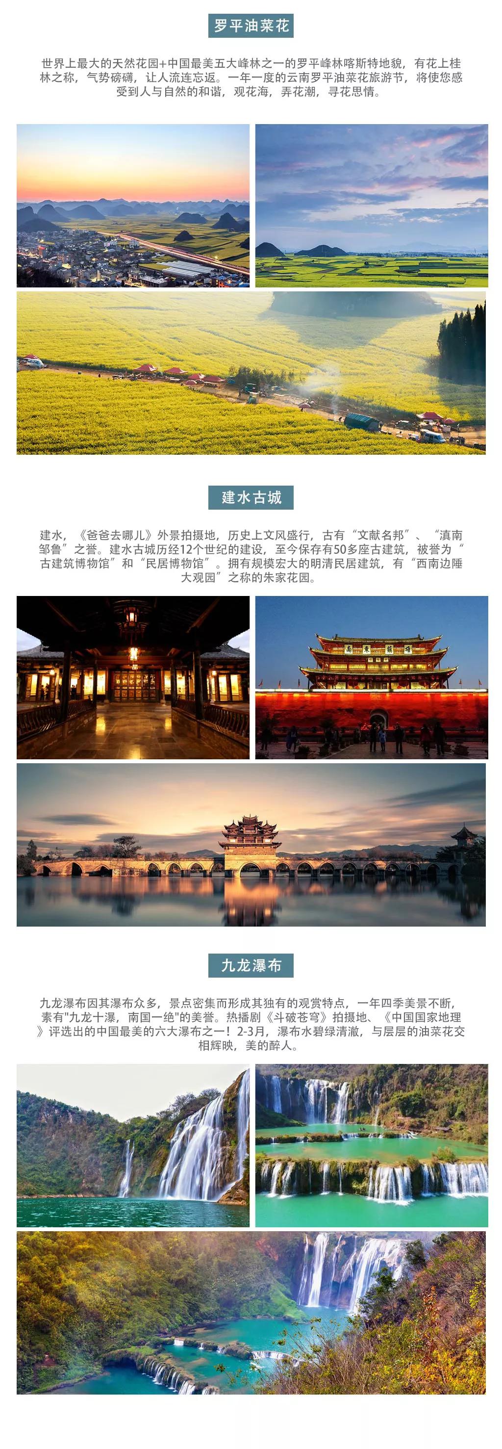 當(dāng)日行程:早起出發(fā)前往熱門影視《斗破蒼穹》拍攝地——羅平縣,到達(dá)羅平縣城后直接前往觀賞中國六大最美瀑布之一的【九龍瀑布】,九龍瀑布群因其瀑布眾多,景點密集而形成其獨有的觀賞特點,一年四季美景不斷,素有"九龍十瀑,南國一絕"的美譽,在約兩公里長的河道上有十級瀑布,九龍十瀑之間,以淺灘或深潭相連,或雄偉、或險峻、或秀美、或舒緩,千姿百態(tài)、異彩紛呈,裂帛般的白瀑,綠玉般的流水,層層疊疊階梯狀的水臺繞著水瀑蜿蜓而下,從不同的角度審視每次都能發(fā)現(xiàn)新的一層驚喜,邊登高看景邊拍照,渴了買根當(dāng)?shù)爻雒乃}卜,汁多美味,清甜潤喉,一路到九龍瀑頂端,微風(fēng)拂過,看那一波又一波的金色油菜花浪潮;