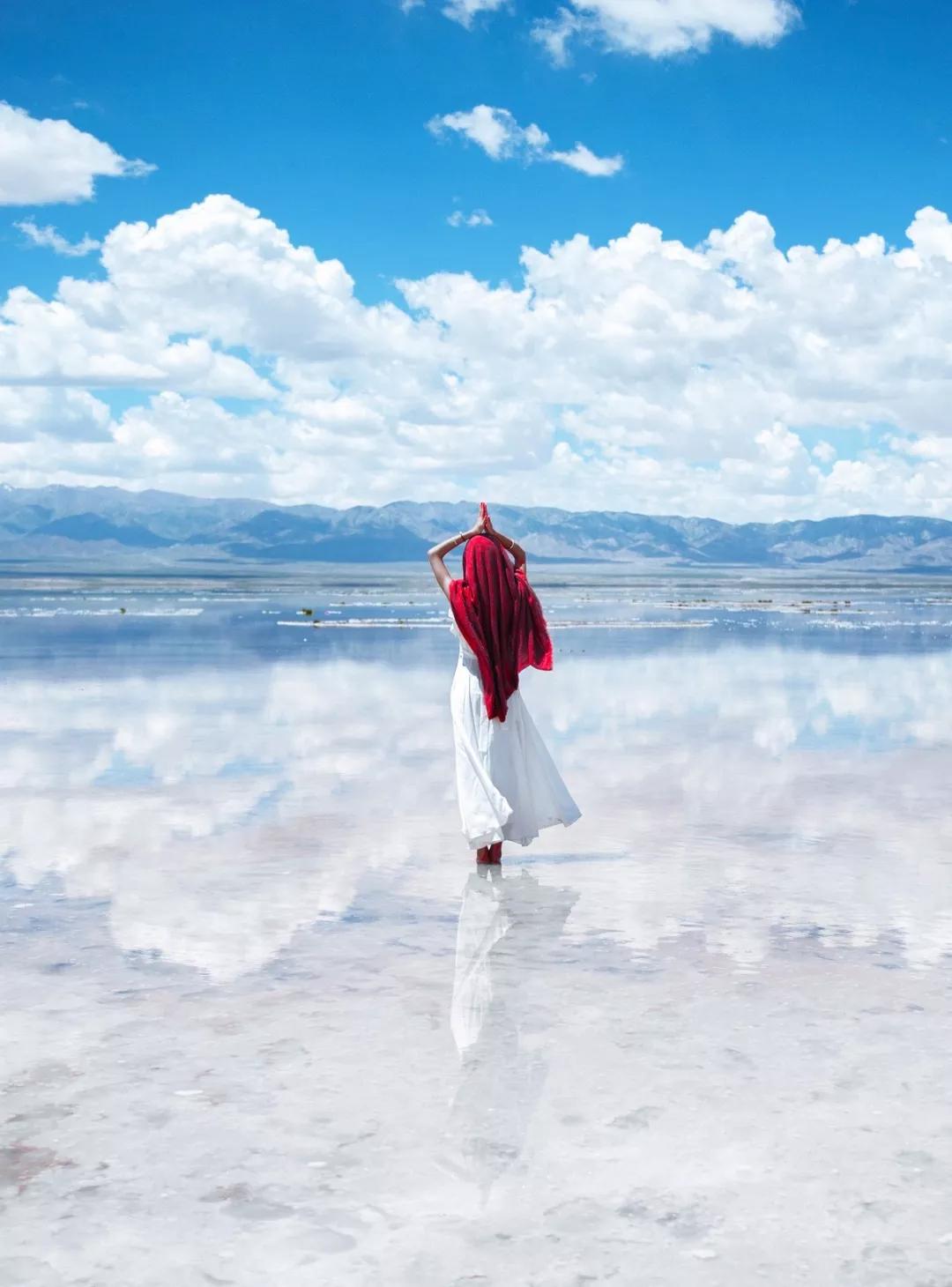 隨后我們來(lái)到炙手可熱的“天空之境”茶卡鹽湖,【茶卡鹽湖】被國(guó)家旅游地理雜志評(píng)為“人一生必去的55個(gè)地方”之一。這里的采鹽歷史非常悠久,湖水含鹽量很大,湖面上會(huì)自然結(jié)晶,一片純白。結(jié)晶之上是一層薄薄的露水,將天空、云朵和對(duì)岸的山都倒映在白色的湖里,非常漂亮,所以也被稱為“中國(guó)的天空之境”。大家可以乘坐景區(qū)內(nèi)的小火車前往景區(qū)深處游玩,如果不乘坐小火車,沿著鐵軌向湖深處散散步拍拍照片也是非常愜意的。