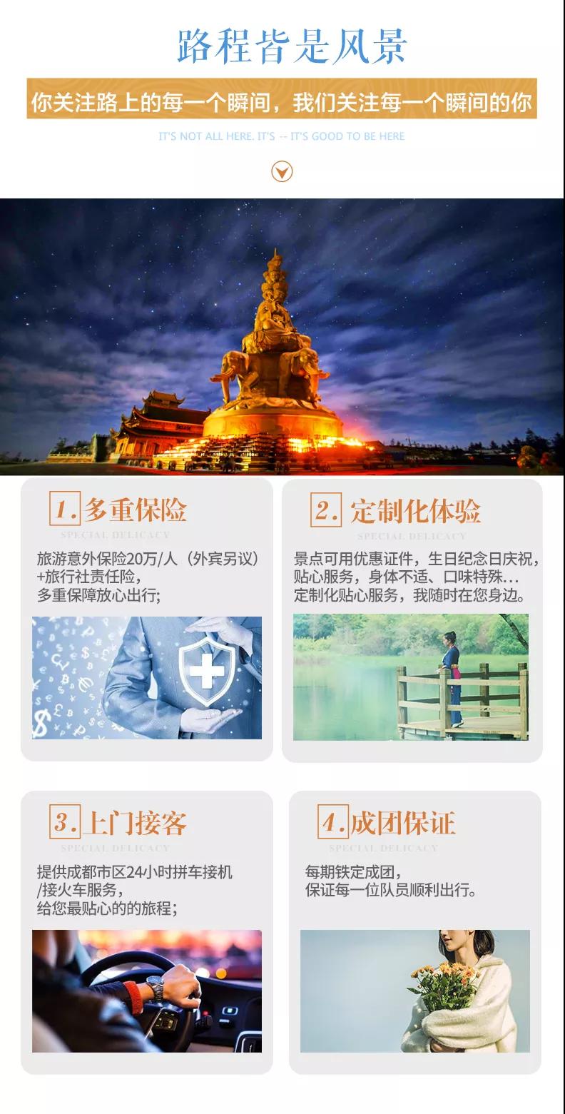 ? 大交通:各地往返成都的大交通;請游客在預(yù)報(bào)名我方確定門票預(yù)訂成功后再預(yù)訂大交通機(jī)票車票,以免因景區(qū)限流造成不必要的損失,敬請諒解。