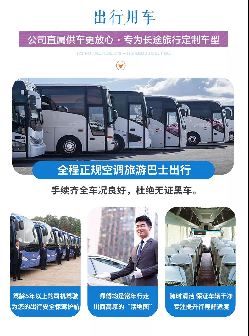 1、關(guān)于車輛交通:目前四川旅游市場8座以下車輛無法辦理旅游牌照,請游客知悉,以此理由提起的投訴我方拒不受理,望您諒解。