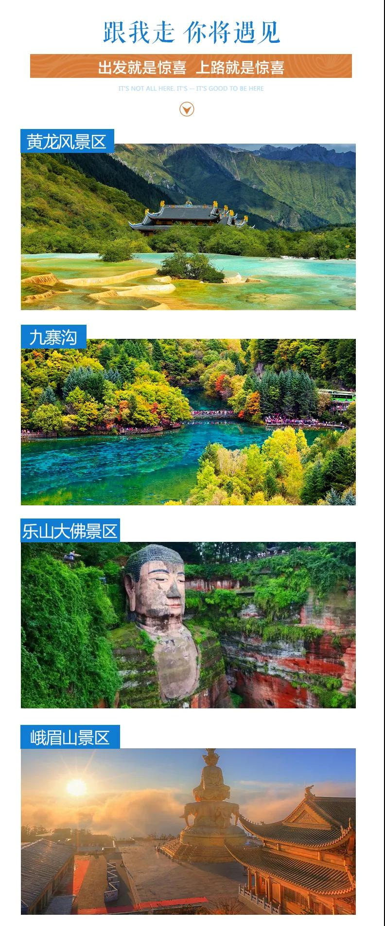 九寨溝門票、黃龍風(fēng)景區(qū)門票、峨眉山首道大門票、樂山大佛門票、熊貓樂園門票、大佛禪院門票;