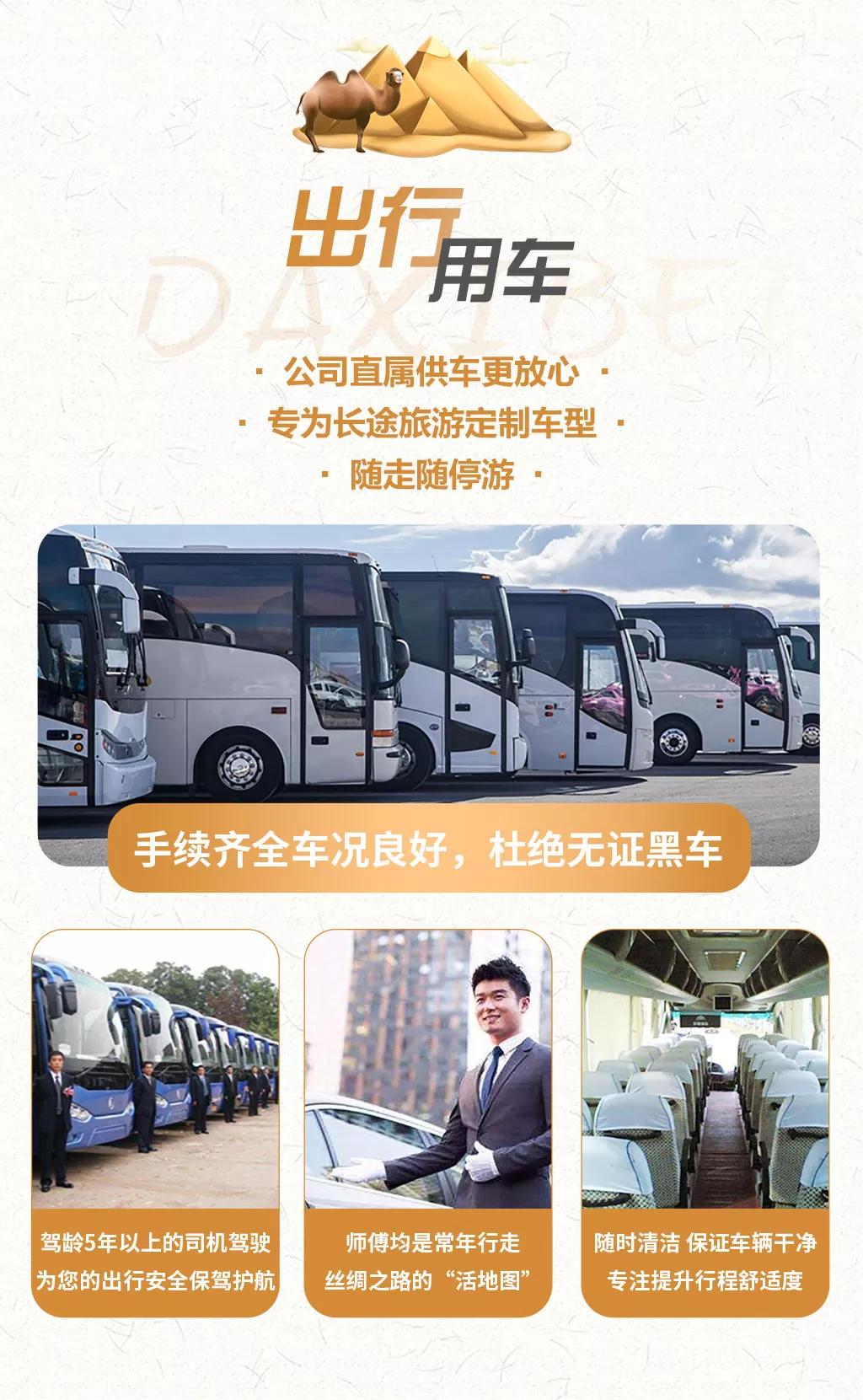 溫馨提示:西北地區(qū)天氣干燥,旅途的過(guò)程中請(qǐng)大家多喝水,注意防曬;敦煌《又見(jiàn)敦煌》演出,旅游淡季298元/人,旺季368元/人起;果木烤全羊費(fèi)用根據(jù)羊的大小決定,由參與活動(dòng)的游客均攤,一般10人一桌,人均消費(fèi)160元左右。