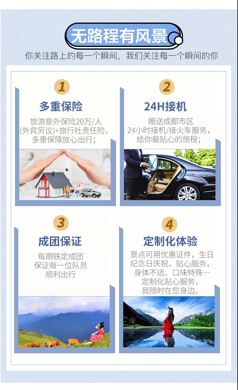 1.門票:各地往返成都的大交通;請(qǐng)游客在預(yù)報(bào)名我方確定門票預(yù)訂成功后再預(yù)訂大交通機(jī)票車票,以免因景區(qū)限流造成不必要的損失,敬請(qǐng)諒解。