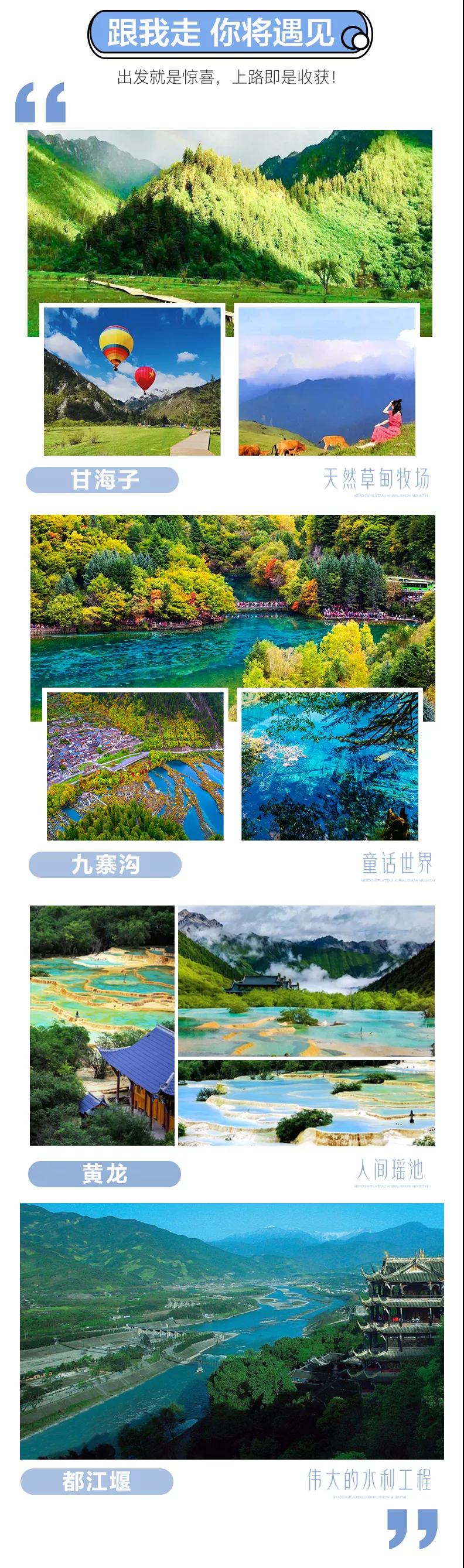 成都 —【都江堰】 — 【甘海子】— 九寨溝