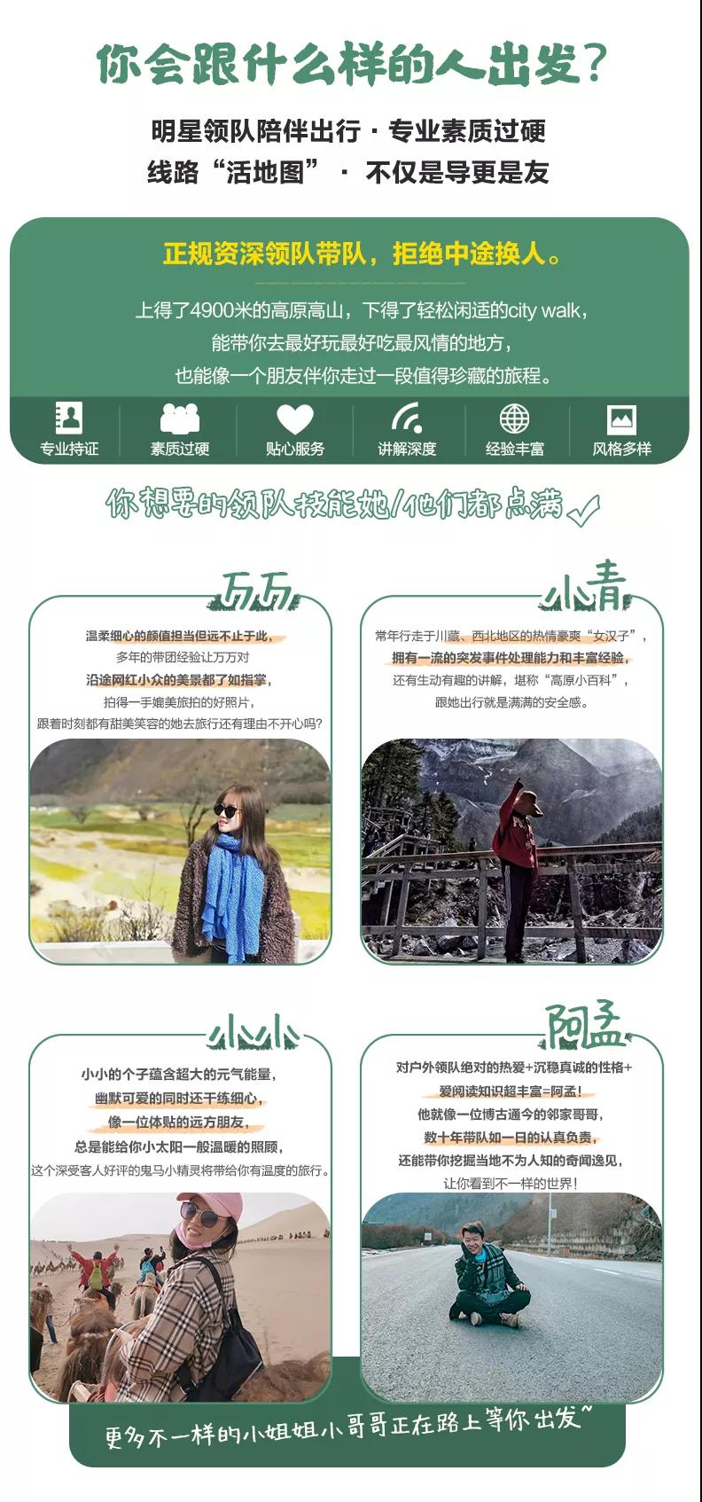 4、如途中遇不可抗因素(如高原反應、修路、塌方、車輛事故阻礙等)我方有權(quán)根據(jù)情況調(diào)整行程線路走向,此舉均是根據(jù)帶隊經(jīng)驗為大家更順利的游玩而做出的改變,希望大家理解和支持,但如造成額外費用由客人自理,望您諒解;若對行程造成影響的,我方將全力協(xié)助游客進行解決,但不承擔由此造成的損失,若因此而增加的費用,敬請游客自理。