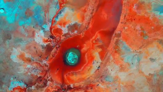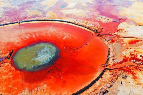艾肯泉位于青海省海西蒙古族藏族自治州茫崖市花土溝鎮(zhèn)莫合爾布魯克村,被稱為“大地之眼”、“惡魔之眼”。 艾肯泉直徑有10多米,泉眼如同沸騰的開水,不斷翻滾上涌,泉眼周圍硫磺礦物質(zhì)長(zhǎng)期沉淀,色彩斑斕。從空中俯瞰,泉眼與噴涌出的泉水以及周圍土地上深紅色環(huán)帶狀的沉淀物,組成了一個(gè)奇特的瞳孔造型,仿佛一只鑲嵌在大地上的眼睛。