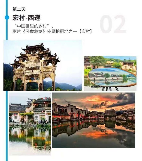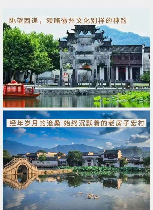 早上:08:00-08:30 各酒店接客人后出發(fā), 酒店早餐后乘車前往 “中國畫里的鄉(xiāng)村”、影片《臥虎藏龍》外景拍攝地之一【宏村】,游覽約2小時。湖光山色與層樓疊院和諧共處,自然景觀與人文內(nèi)涵交相輝映,是宏村區(qū)別于其他居民建筑布局的特色,從整個外觀上說,宏村是古黟桃花源里一座奇特的牛形古村落,背倚黃山余脈羊棧嶺、雷崗山等,地勢較高,有時云蒸霞蔚,如濃墨重彩,有時似潑墨寫意,四周山色與粉墻青瓦倒映湖中,好似一幅徐徐展開的山水畫卷,吸引了眾多愛好寫生、攝影者及影視作品紛至沓來。宏村整個整個村落占地30公頃全村現(xiàn)完好保存明清民居140余幢,承志堂“三雕”精湛,富麗堂皇,被譽為“民間故宮”。