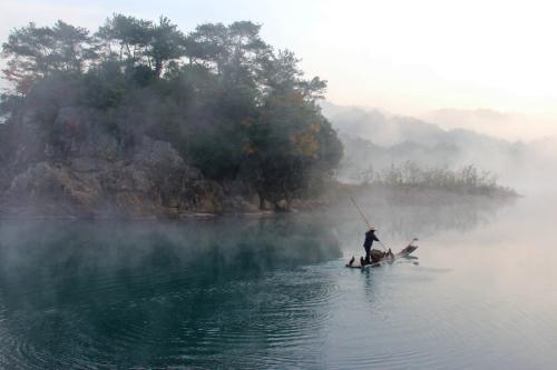 早上拍攝日出,結(jié)束后,乘船前往瑞安。后乘車前往花竹村拍攝。 花竹村居高臨下、水天相連,有著一望無際的景深。近景浮標(biāo)竹竿、中景魚排木屋、遠(yuǎn)景島嶼帆影,整個場景井然有序?;ㄖ襁€是觀賞“?,幜袓u”全景的最佳地點(diǎn),尤其以日出最為壯美。若適逢云霧漂浮之日,海面上云蒸霧涌、輕盈柔美。?,幜袓u若隱若現(xiàn),猶如海市蜃樓般迷人。