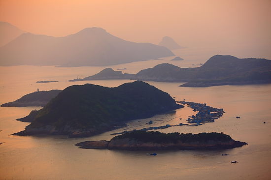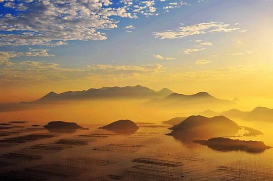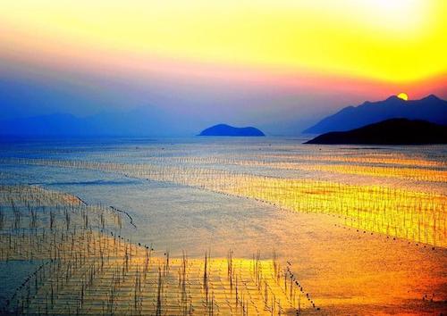 花竹村居高臨下、水天相連,有著一望無際的景深。近景浮標(biāo)竹竿、中景魚排木屋、遠(yuǎn)景島嶼帆影,整個場景井然有序?;ㄖ襁€是觀賞“?,幜袓u”全景的最佳地點(diǎn),尤其以日出最為壯美。若適逢云霧漂浮之日,海面上云蒸霧涌、輕盈柔美。?,幜袓u若隱若現(xiàn),猶如海市蜃樓般迷人。