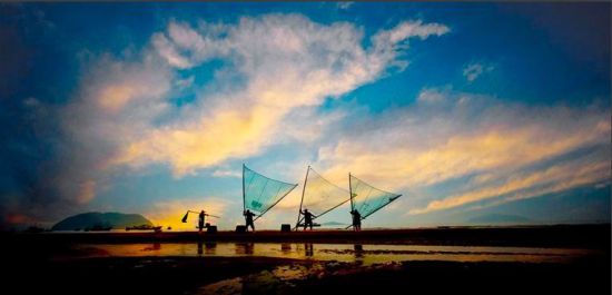 拍攝貼士:這里依山臨海,視野開闊,是拍日落的理想景點(diǎn)。沙灘上,一條彎彎曲曲的水道,小溪流從中穿過,沖刷岀一片復(fù)雜多變的紋理,柔美的線條在日落的余輝下呈現(xiàn)出金燦燦的色調(diào),給多彩的沙灘增添幾多生機(jī)。東壁的攝影點(diǎn)不僅能拍到氣勢恢宏的日落,也能拍到漁民捕魚織網(wǎng)的場景,更有疑是銀河落九天的優(yōu)美線條!