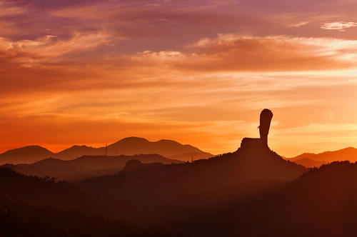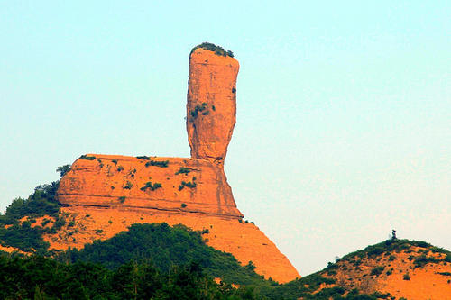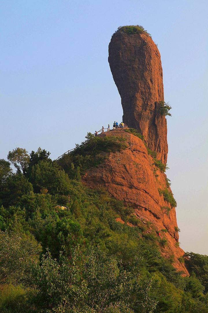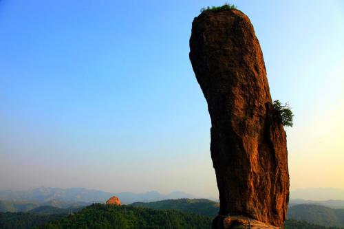 棒槌山在磬錘峰國(guó)家級(jí)森林公園內(nèi)的山上,有一塊石頭,上粗下細(xì),形似棒槌,故此山俗名“棒槌山”。該石上部直徑15.04米,下部直徑10.7米,高38.29米,連同棒槌底下突起的基座通高60米。