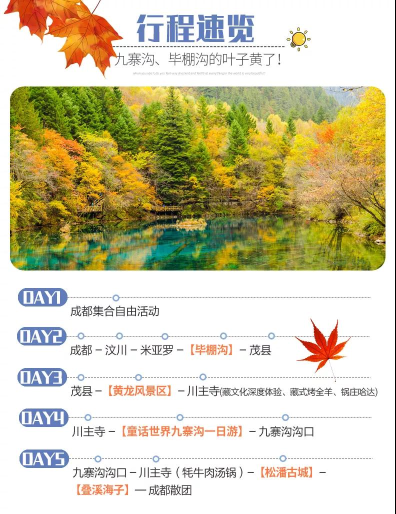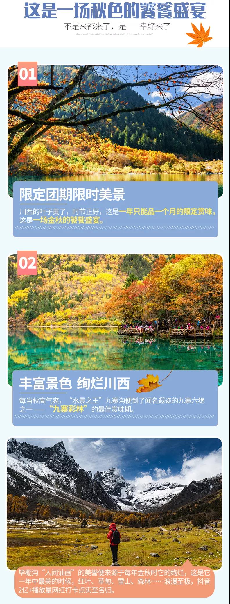 春看花,夏消暑,秋賞葉,冬玩雪,在彩林搖曳的畢棚溝九寨溝玩到盡興后,我們抵達(dá)成都,結(jié)束本次驚艷的秋色川西之旅。