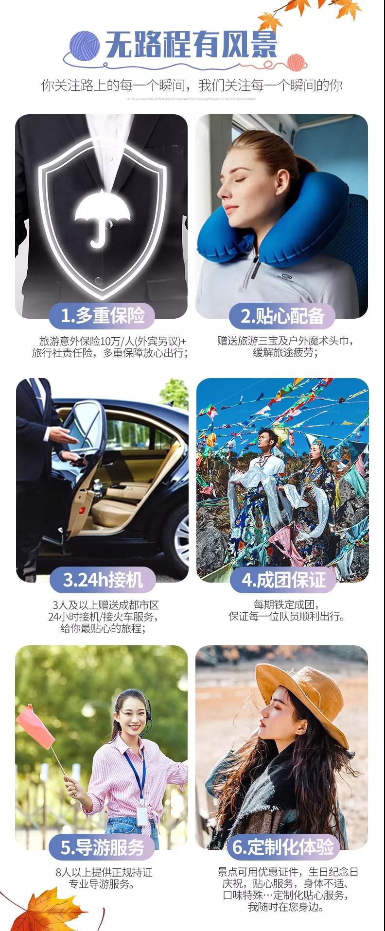 1、關(guān)于車輛交通:目前四川旅游市場8座以下車輛無法辦理旅游牌照,請游客知悉,以此理由提起的投訴我方拒不受理,望您諒解。