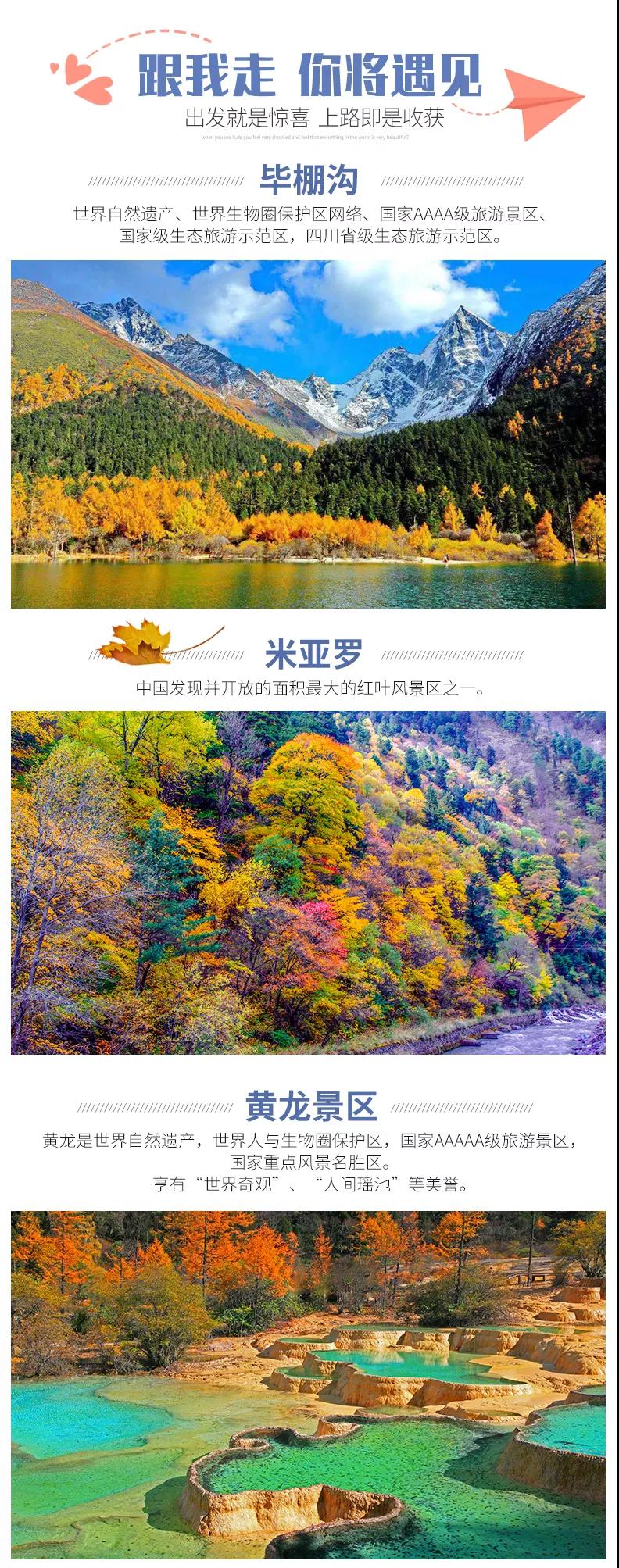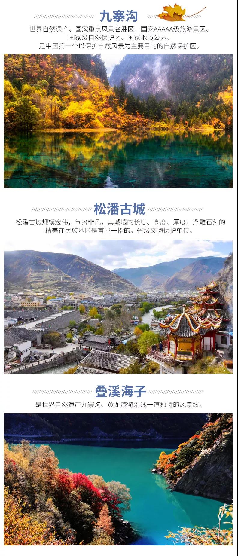 含全程九寨溝門票、黃龍風(fēng)景區(qū)門票、畢棚溝門票。