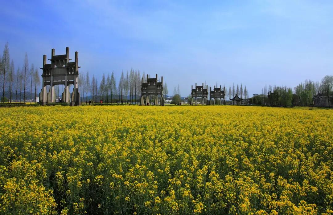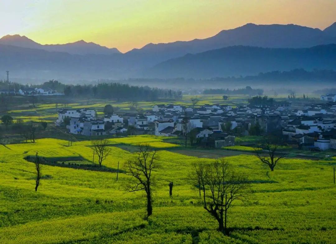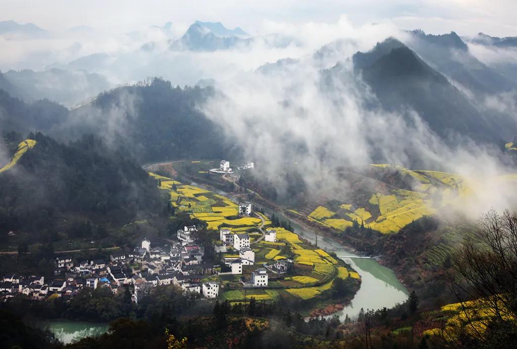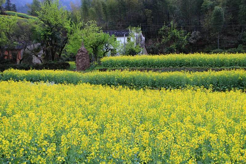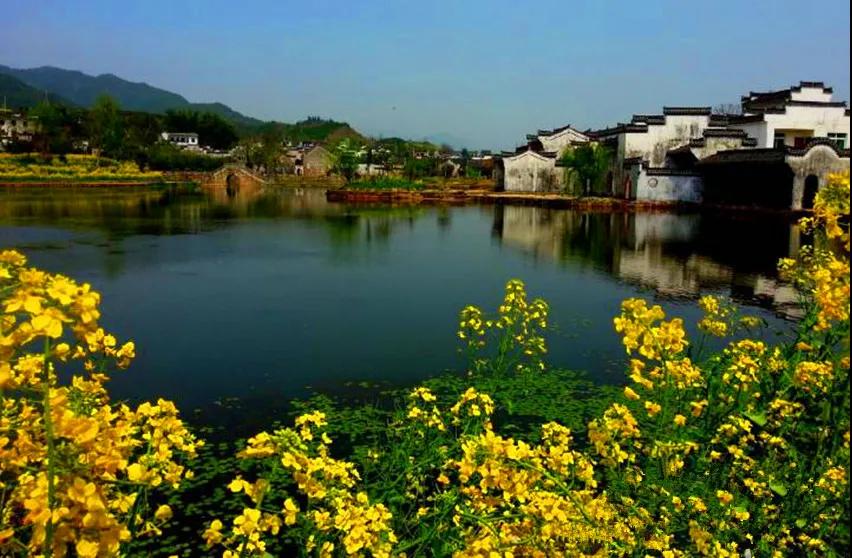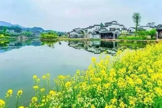 粉墻黛瓦的徽州古民居點綴于廣闊的油菜花叢中
