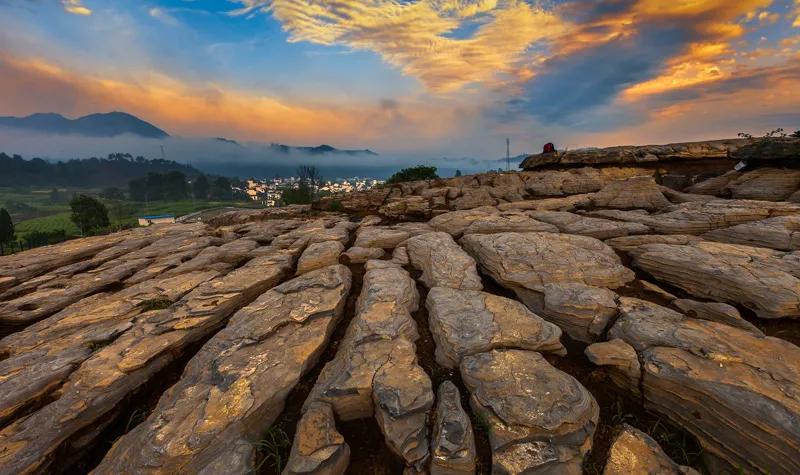 石潭,美就美在云海,時而如靜謐薄紗,在空中飄動著;