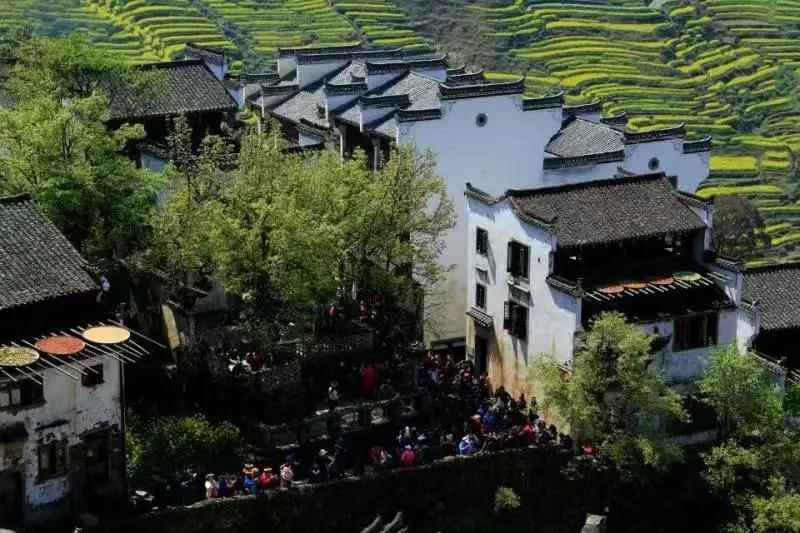 早餐后前往梯云村落、夢幻田園--篁嶺人家,【80公里】一個懸掛在山坡上的古村落,群山環(huán)繞的數(shù)百棟徽派古民居在百米落差的坡面錯落有序,與對面層層疊疊的千畝梯田花海遙相呼應(yīng),地?zé)o三尺平,自然條件的局限卻激發(fā)了先民的想象和創(chuàng)造力,從而在無意間造就了一處中國絕無僅有的“曬秋人家”風(fēng)情畫。篁嶺屬典型山居村落,民居圍繞水口呈扇形梯狀錯落排布。篁嶺因”曬秋”聞名遐邇,村落“天街”似玉帶將經(jīng)典古建串接,徽式商鋪林立,前店后坊,一幅流動的縮寫版“清明上河圖”。