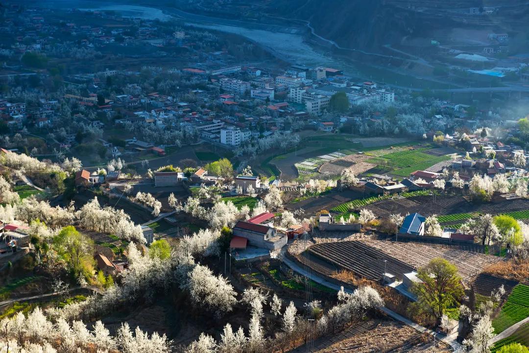 我們的團(tuán)期是金川最好的時(shí)節(jié),萬(wàn)物復(fù)蘇的初春三月,正值金川成千上萬(wàn)棵梨樹花期,雪白色的梨花競(jìng)相開放,一片片、一層層的鋪散開來(lái),漫山遍野的白色花海中夾雜零星新綠,空氣中氤氳著梨花清香,眼是天堂,身亦是天堂。