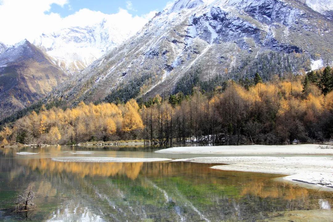 有“四姑娘山后花園”美譽(yù)的畢棚溝(不含景區(qū)觀光車60元/人-上行游客中心-龍王海/下行娜姆湖酒店-游客中心),溝內(nèi)有原始森林、絢麗多彩的植被、雪山溫泉,景觀豐富,一年四季各有各的美。初春時(shí)節(jié)斑駁著枯色的山林正漸漸蘇醒,枝丫生出新的綠色希望,然后就匯成一片嫩綠的海洋;溪流才開始解凍,半冰半水潺潺流動(dòng),垂卷而下的百米瀑布如白砂裹雪,這是畢棚溝一年之中顏色最為清冽的時(shí)節(jié);沿原始森林中的蜒曲的山路前行,兩旁塞滿了楓樹、槭樹、鵝掌松、落葉松,遠(yuǎn)眺藍(lán)天高山,奇特的萬(wàn)年冰川,細(xì)細(xì)品味這個(gè)“小九寨”的雋氣與柔美。