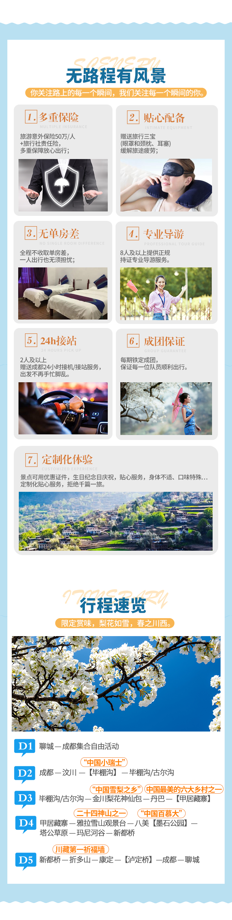 1、關(guān)于車輛交通:目前四川旅游市場(chǎng)8座以下車輛無(wú)法辦理旅游牌照,請(qǐng)游客知悉,以此理由提起的投訴我方拒不受理,望您諒解。